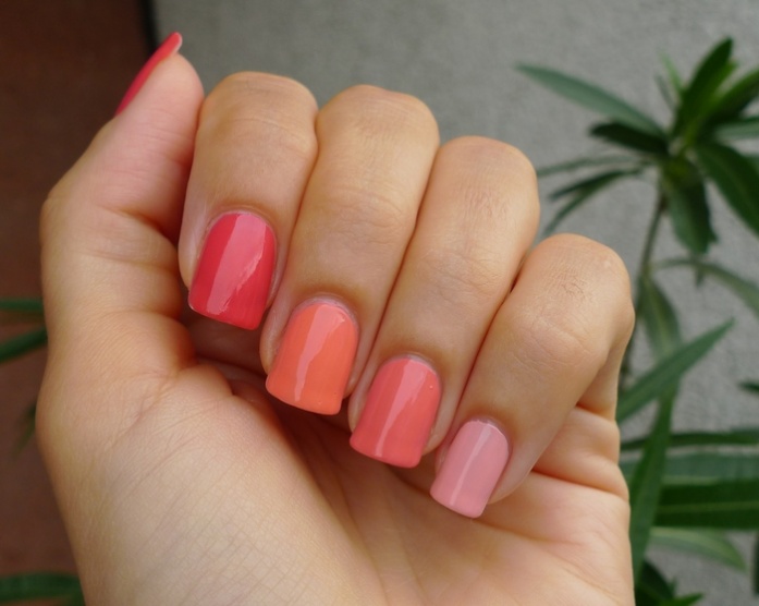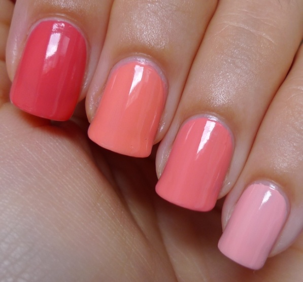 Zleva: Essie Cute as a Button, Essie Haute as Hello, Essie Tart Deco, Essie Van D´go.