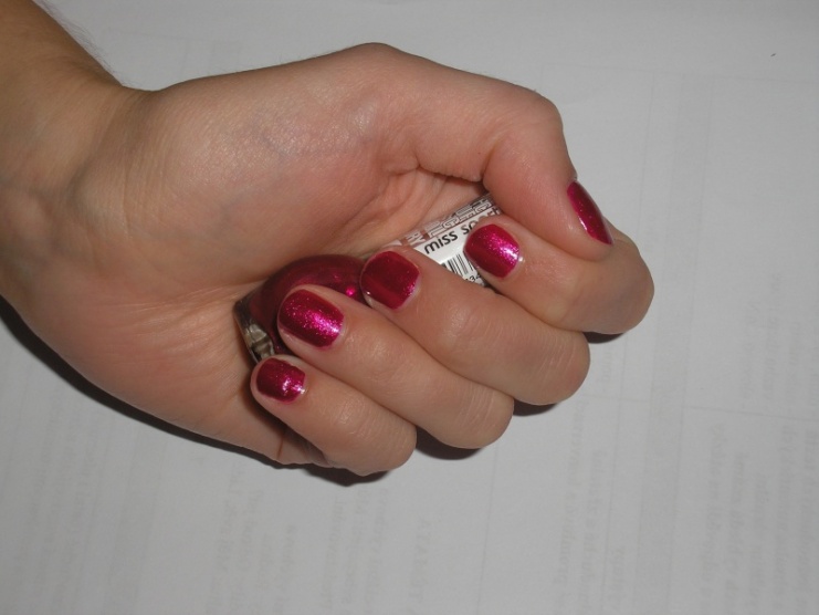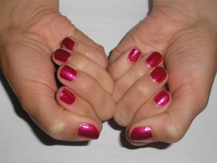 . Barva nádherná. Na fotkách to háže do červena, ale ve skutečnosti fialová se třpytkami.