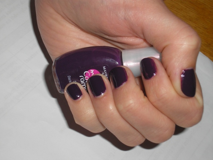 Další podzimní barvička, skvěle se mi hodí k šatům. Maybelline Colorama Dark plum s nadlakem Seche. Lakoval se celkem dobře, mám 2 vrstvy.
