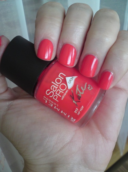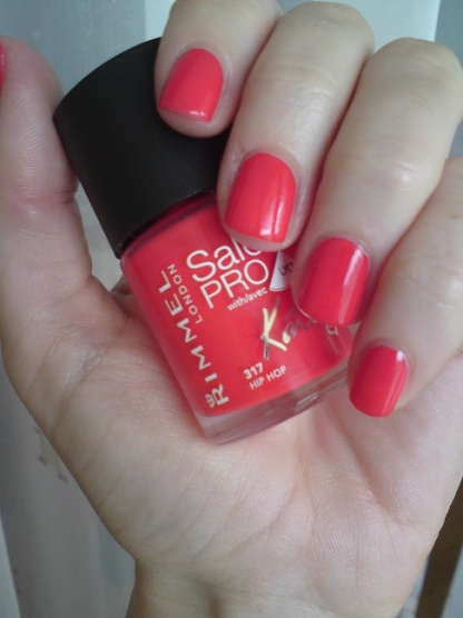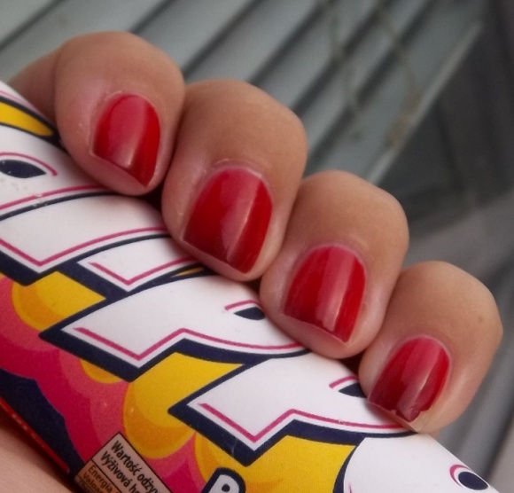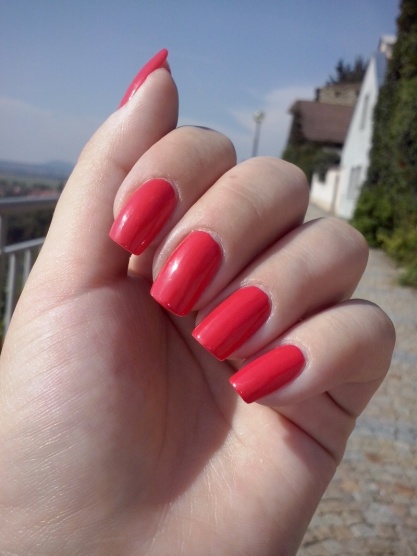 Rimmel Hip Hop, rudá s kapičkou růžové. 3 vrstvy, stačily by 2, ale obtiskla se mi deka, tak jsem musela jednu přidat