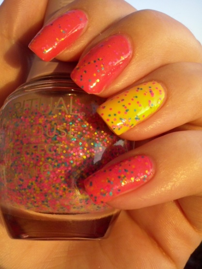 Oriflame v odstínu Lemon Sorbet, Rimmel v odstínu č. 502 Hot Tropican a Lighthouse od Sparitual