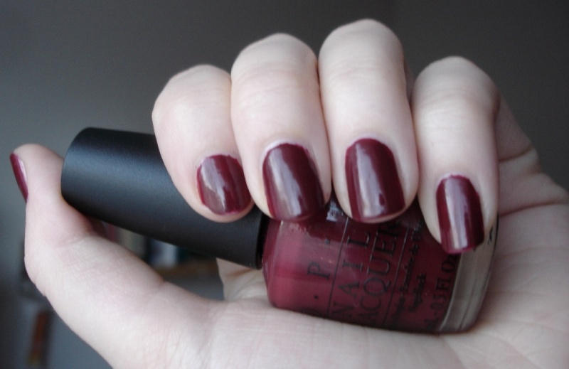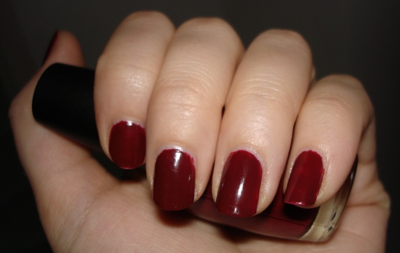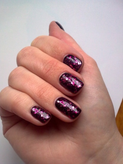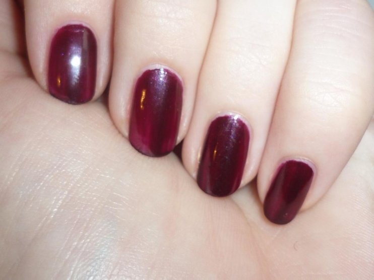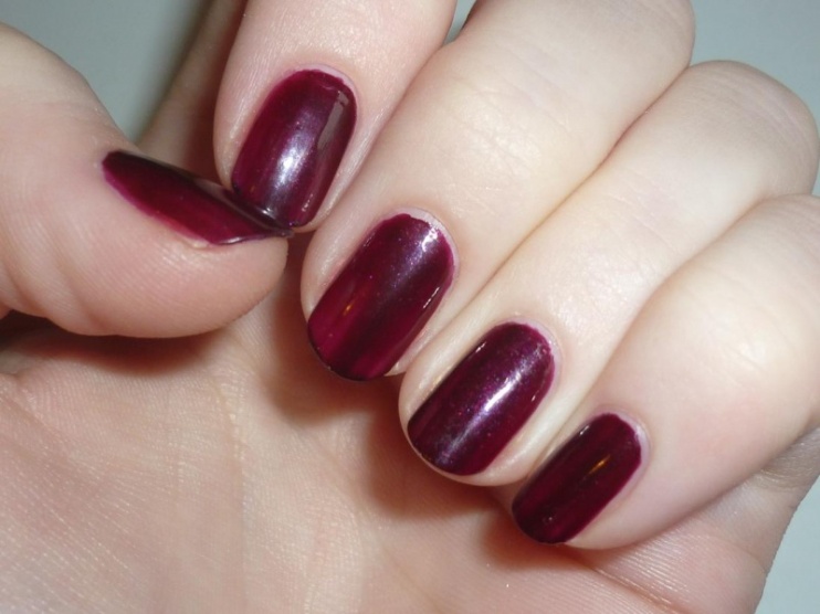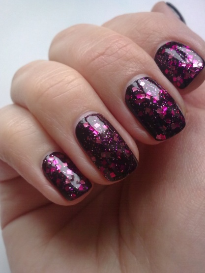 Temně rudo-fialový odstín s jemnýma třpytivýma částečkama.