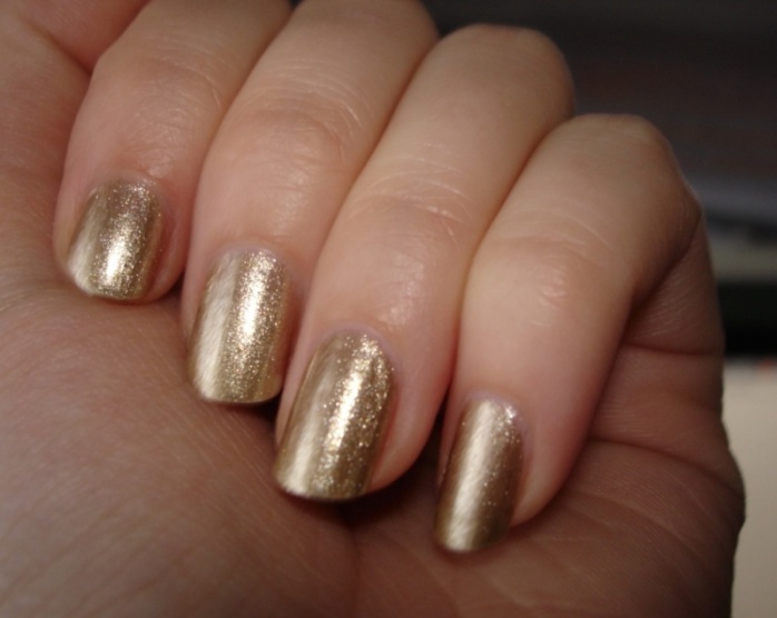 Přes to vše dvě vrstvy Glosseru Orly. (na zvětšené fotce to vypadá, jakoby byly v nadlaku nerovnosti, ale to dělá jen odraz světla, ve skutečnosti se s ním pracuje dobře a je krásně hladký, ne hrbolatý.)