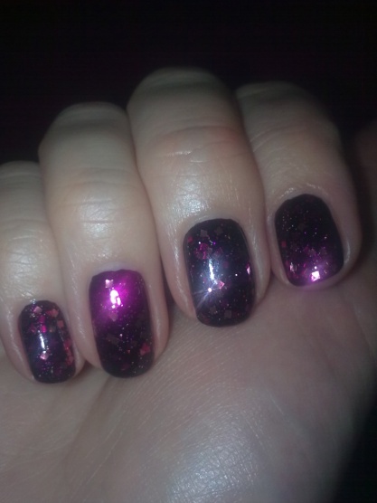 Včera večer při lakování mi připadal černo-šedo-modrý, dneska při denním světle je spíš fialovo-černý