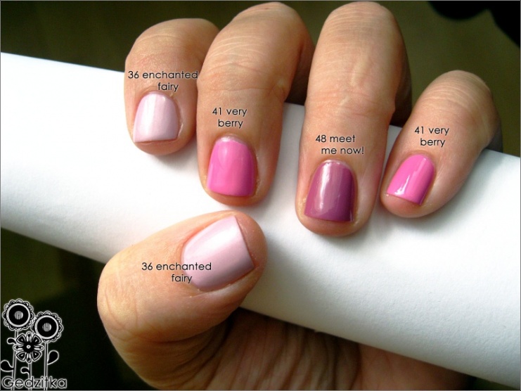 Tak jsem dneska neodolala a koupila jsem si v Rossmannu 4 laky od Essence, přidávám zatím jen tři: Essence 36 ENCHANTED FAIRY, 41 VERY BERRY, 48 MEET ME NOW!