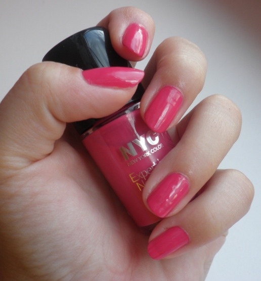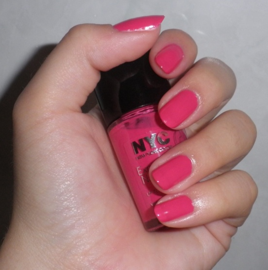 Dnes jsem si koupila levný lak od značky NYC, odstín 195 Faithful Fuchsia a zatím jsem moc spokojená, krásně se lakoval, a bezvadně kryje, mám jen jednu vrstvu a bez nadlaku a tak jsem to i nechala, myslím že to úplně stačí.