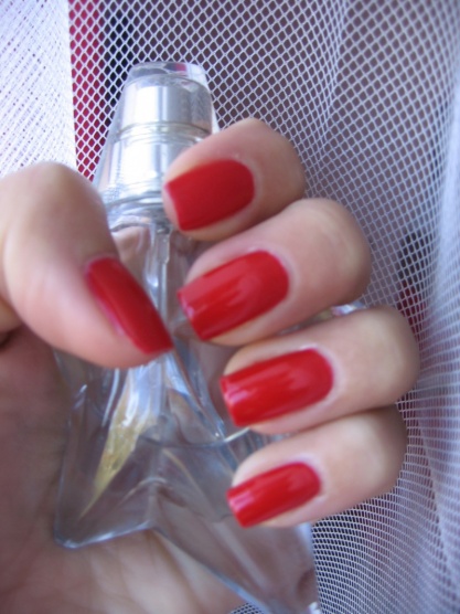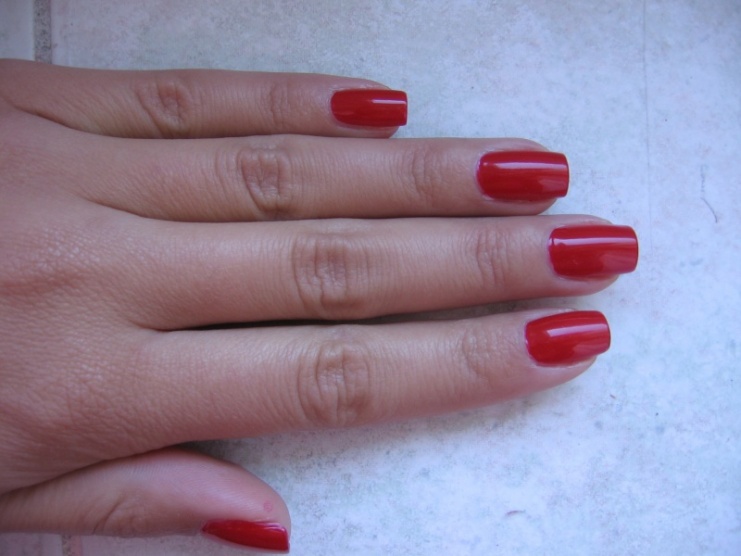 Sally Hansen. Right said red. Krásná rudá, ale minimálně dvě vrstvy, spíš tři
