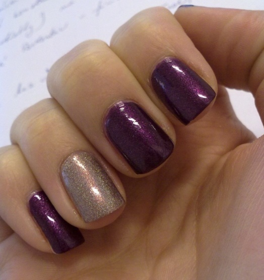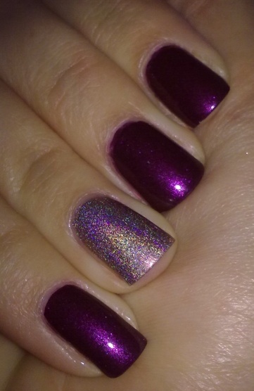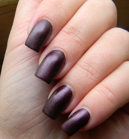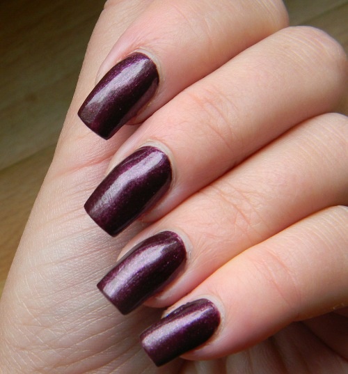 krásná temná fialovo-vínová s jemným shimmerem, hned je mým oblíbencem, doufám, že i chvilku vydrží..
