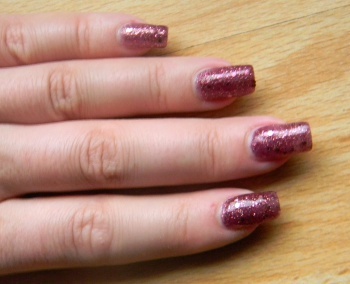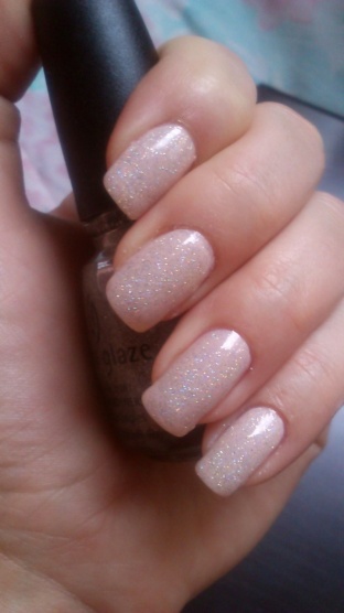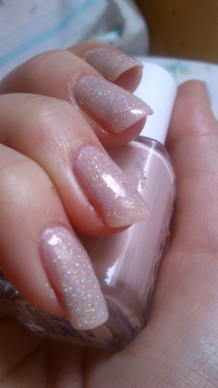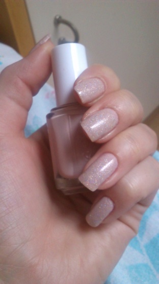Essie Topless&barefoot 1 silnější vrstva, přes něj 2 vrstvy China Glaze Fairy Dust a TC