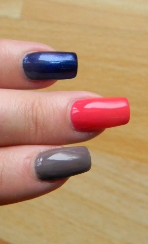 Catrice Sydney - hnědý, NYC 109 - růžový, essence 76 - modrý. Jediný co nešel zachytit je ten NYC, barva je něco mezi růžovo-červeno-oranžovou