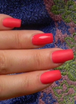 Gabriella Salvete ENAMEL with hardener, odtieň 129, 2 vrstvy. Prekrytý Rimmel 60 seconds, 740 clear. Za denného svetla svetlejší, pri umelom svetle tmavší