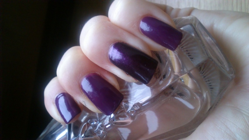2 vrstvy + TC, nevadily by ani 3 vrstvy.. vínovo-fialová krémovka, prsteníček Essence True love, skoro stejný odstín, jen shimmerovka..
