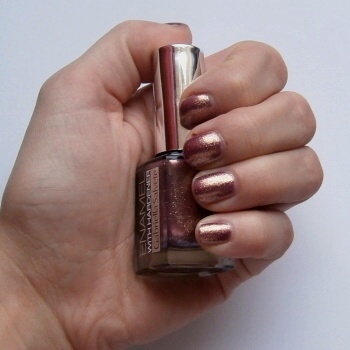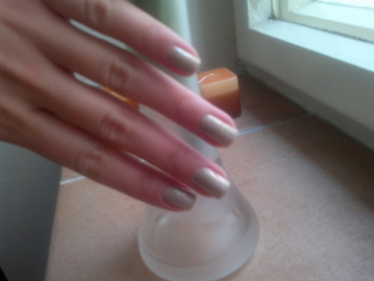 Nude se zlatými třpytkami, měla jsem min.týden a nebavilo mě to, výdrž bohužel až moc dobrá, nenápadně jsem to musela šťourat, abych měla důvod odlakovat.