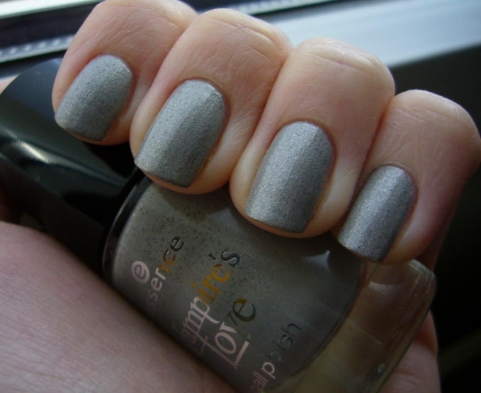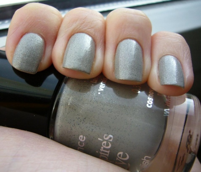 Dvě vrstvy, bez nadlaku (jinak by nebyly vidět ty drobné částečky, které lak obsahuje). Docela zajímavá šedivka