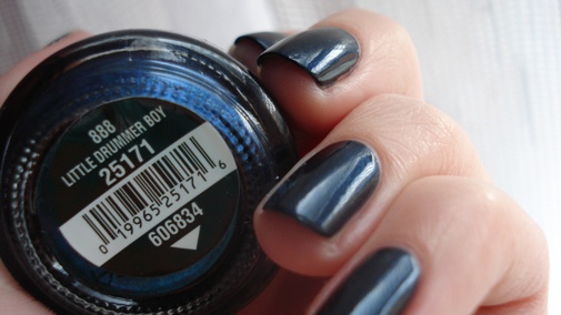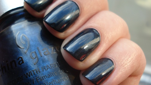 Tmavý navy s jemnějším shimmerem - China Glaze - Little Drummer Boy. Když jsem objednávala, čekala jsem něco malinko světlejšího a tak trochu víc modrého, ale nakonec přijde vhod i takhle. Lakování sice pro mě trochu boj, docela se rozléval kam chtěl, ale dá se.