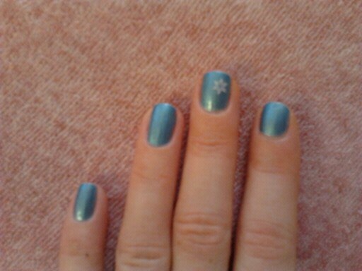ESSENCE 75 gleam in blue na prostředníčku samolepka také Essence z té zimní limitky. Špatná kvalita fotky a oproti vám mám ošklivé nehty.