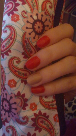 1. + 2. foto - Nude lak je Avon (Perfectly Flash - je super) a červený lak H&M