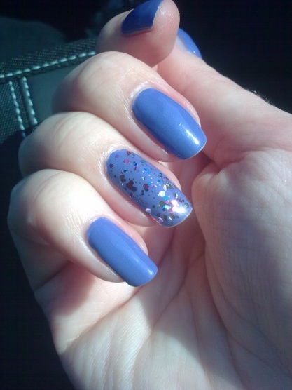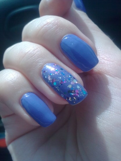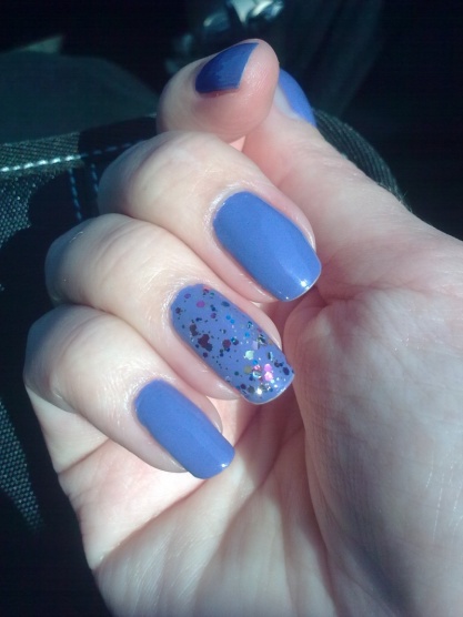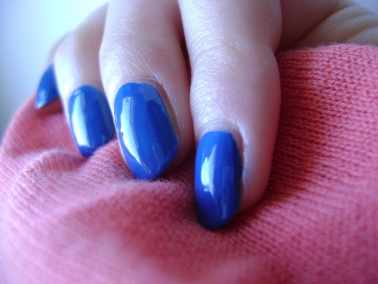 Barry M - Cobalt Blue. Omlouvám se za nekvalitní fotografii, nedokonalost lakování a suchou kůži.