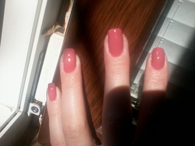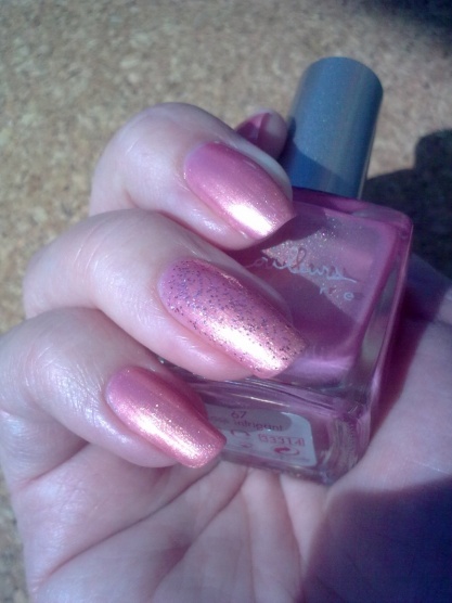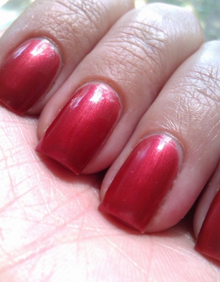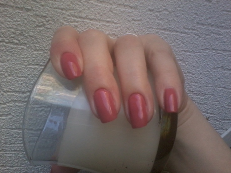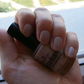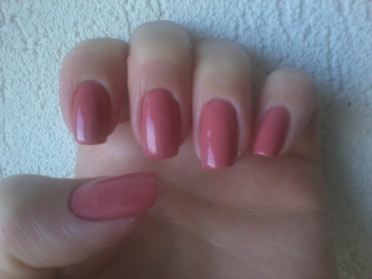 Má v sobě jemný modrý shimer, který je líp vidět pod umělým světlem. Dala jsem dvě vrstvy + seche, ale chtělo by to pro úplně krytí ještě jednu.
