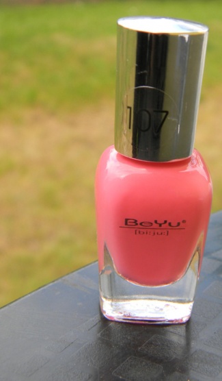 BeYu 107 z parfumerie Douglas. Musím říct, že to asi bude jeden z neoblíbenějších laků na léto! Barva šla opět těžko zachytit, je to něco mezi melounovou a růžovou