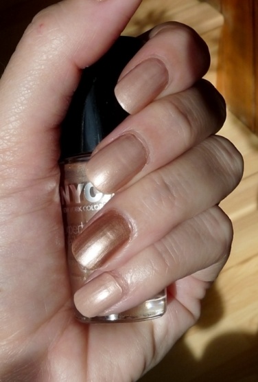 Přidávám jednu tmavší béžovku - NYC Caramel Toffee 220 - pravá barva je vidět na prsteníčku (ve skutečnosti jde trošku míň do zlata), ostatní nehty ještě přelakovány tónovacím lakem na francii Transculent Coat od Gabrielly Salvete, takže jdou víc do růžova.