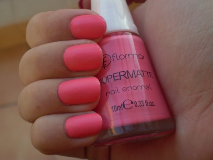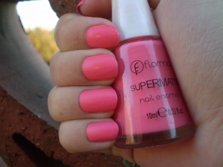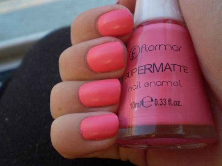 Flormar 117 -> čekala jsem pastelkovou růžovou, a ono nééé.... Je to zářívka. V lesku na mě byla vážně ,,moc," takže ztlumená matujícím top coatem od Essence...