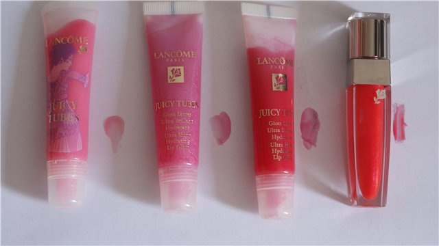 Lancome Juicy tubes: 108 PARIS Moulin rouge, Lychee 19, Fraise 17 a Color fever gloss 142 Red red rose