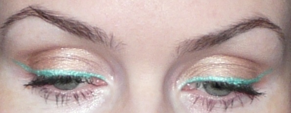 tak přihodím jednu děsnou fotku jen kvůli těm barvám,mám ráda hnědobéžové stíny a k tomu tyrkysovou linku,barvy jsou zkreslené a je to už po celém dni na očích foto mobilem,tak se omlouvám.....