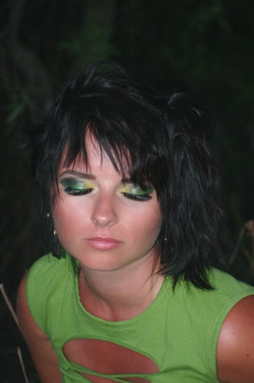 Oči: pigmenty MAC (Lemon drop, Magenta madness, Clear skyblue, Crystalled yellow, Partylicious, Emerald green)