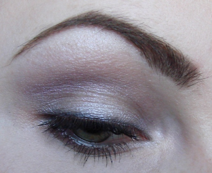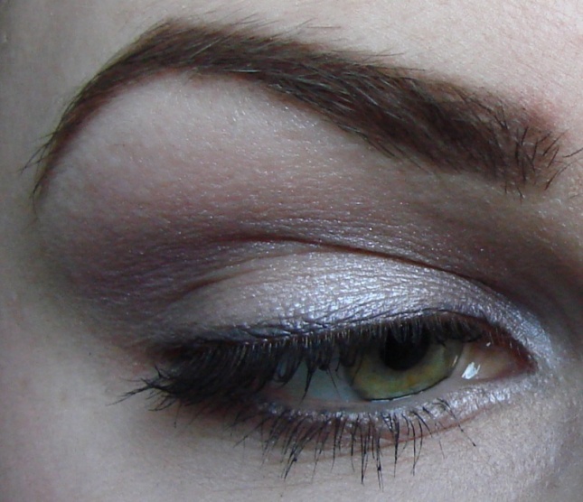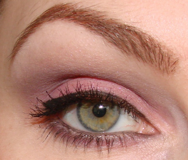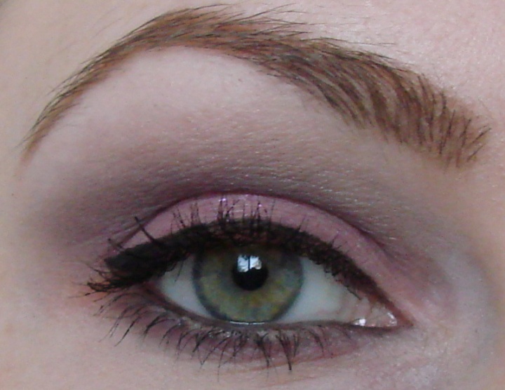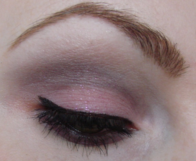 Nic oslnivého to teda není. Matná růžová, Bourjois - Noir Precieux v záhybu, šedá tužka, jemné růžové glitříky, gelová linka, řasenka