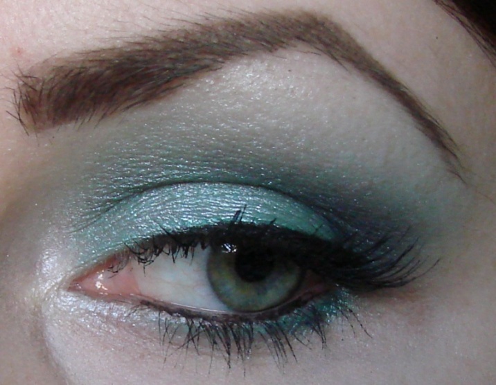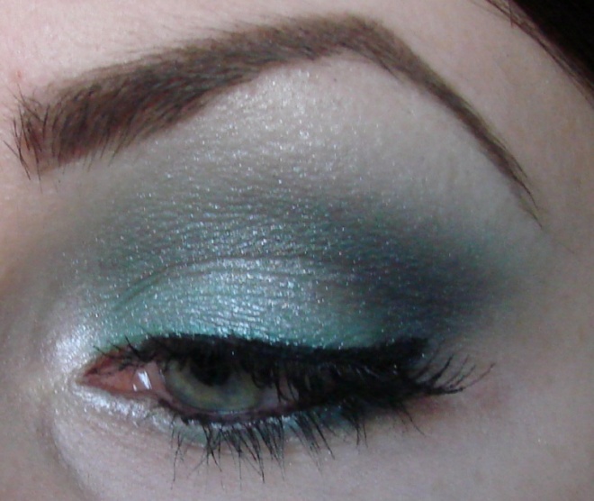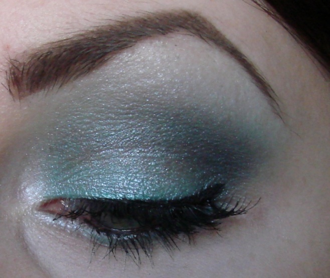 Coastal Scents Turquoise gel. linka jako podklad, Mac Mutiny, Mac Teal, Bourjois šedá v záhybu, bílá v koutku, Mac Blacktrack