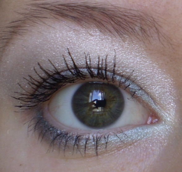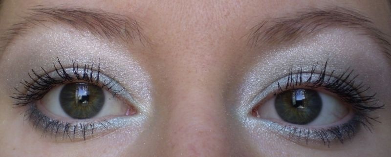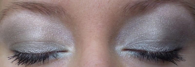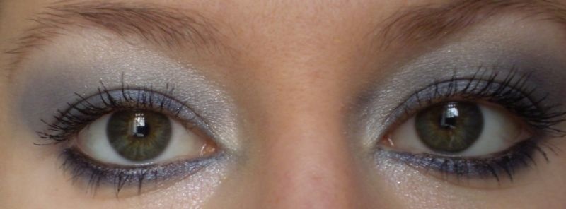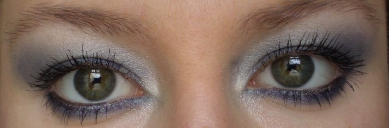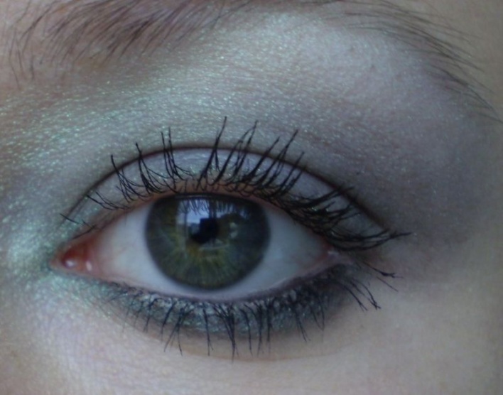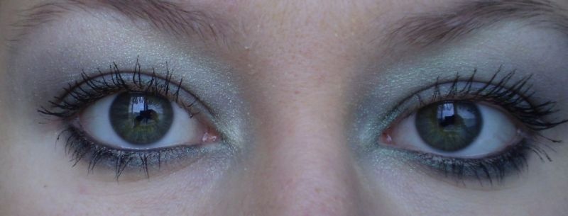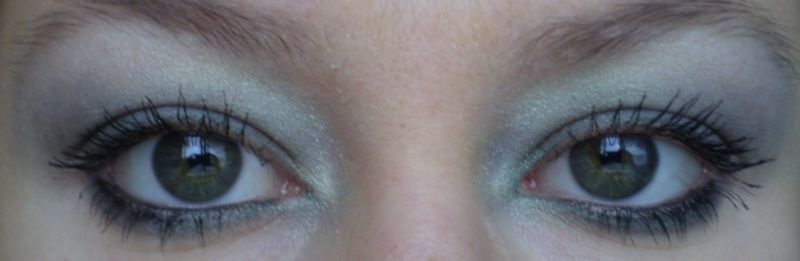 Na celé oko opět použit podklad Silver touch Sisley, poté pod obočí stín Sisley Vanilla, na víško stín Stardust a na banánek Quartz. Jemně černá tužka Estee Lauder a řasenka Sisley Ultra facil. Škoda, že ty barvy vůbec nevyniknou, obvzlášt ta Stardust je prostě nádherná jemná zelenošedá...