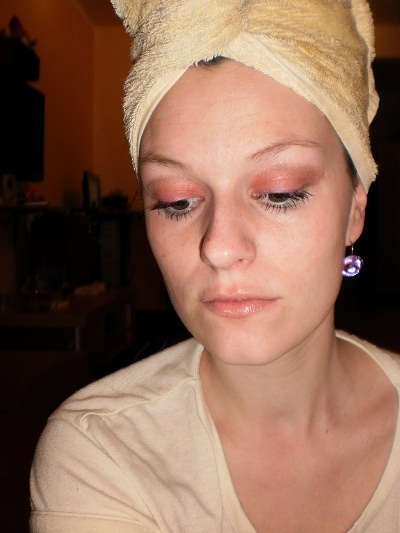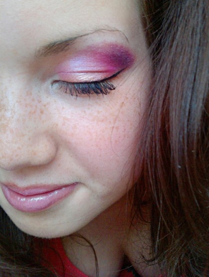 ahojky, tak jste mě navnadili tím líčením, že jsem musela taky něco vyzkoušet.. Kdysi jsem chtěla být vizážistka..a je ze mě chemik no.. ale malování mám stále ráda =o), tak se nechám dobrovolně zkritizovat za moje nalíčení.. Jinak použila jsem oční stíny od oriflame, které už tam neprodávají =oD , 2. stíny od avonu - prescion glimmer - bronze ; řasenku od avonu - colortrend -plump out a tužku na oči - colortrend - purple