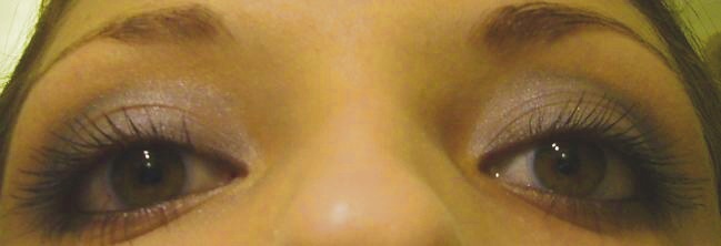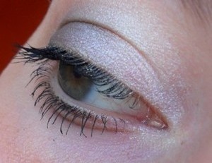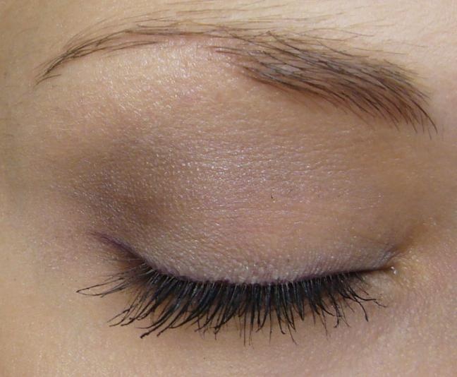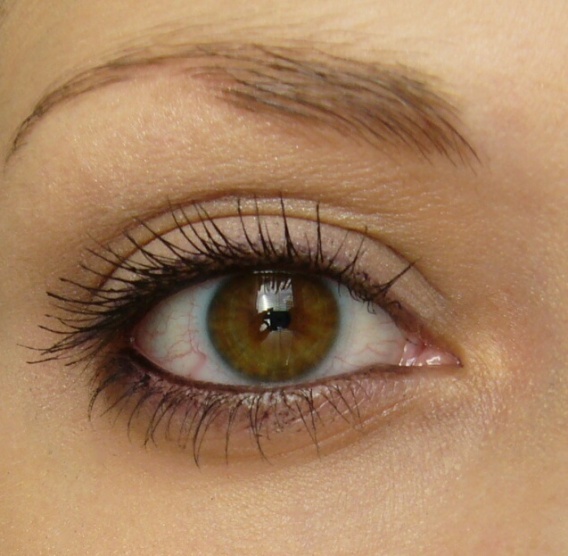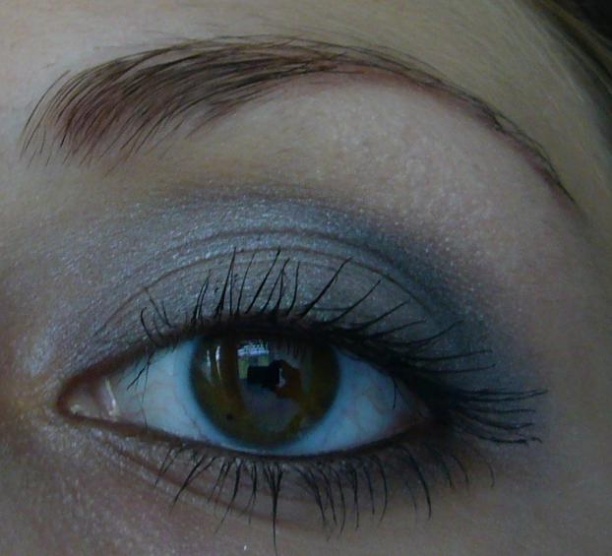 Použila jsem nude a hnědý stín, hnědou a černou tužku na oči