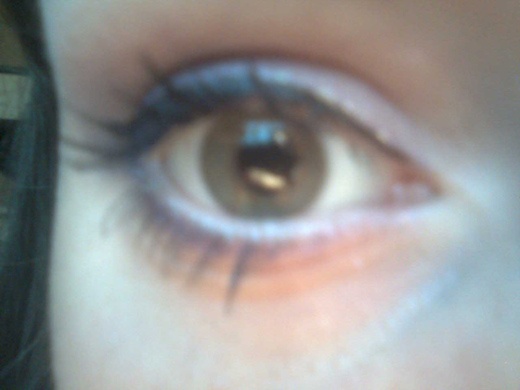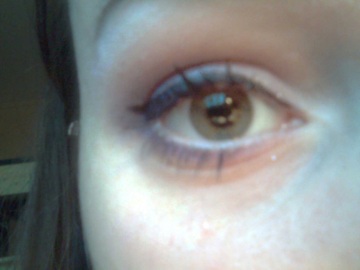 Jestli ty dva monokly mají evokovat něco jako kouřové líčení tak to je sakra hustej dým. Zřejmě to nanášela pěnovým aplikátorem a to v hojném množství. Někdo by jí měl koupit štětec a vysvětlit, že méně je více.
