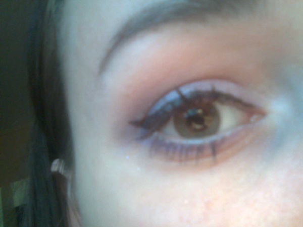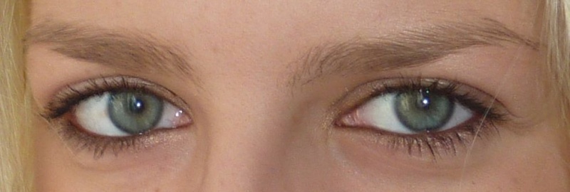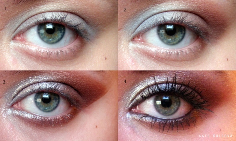 Našla jsem foto svého typického jemného líčení např. do práce - světle zlato-růžové třpytivé stíny, hnědá tužka, řasenka