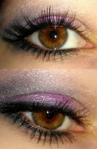 Přidávám svoje. Řasenka Bourjois, stíny ELF u druhého navíc třpytky od dermacolu. Ve skutečnosti to nebylo tak třpytivé to dělá to že to bylo foceno s bleskem.