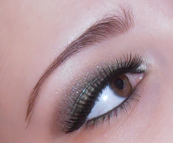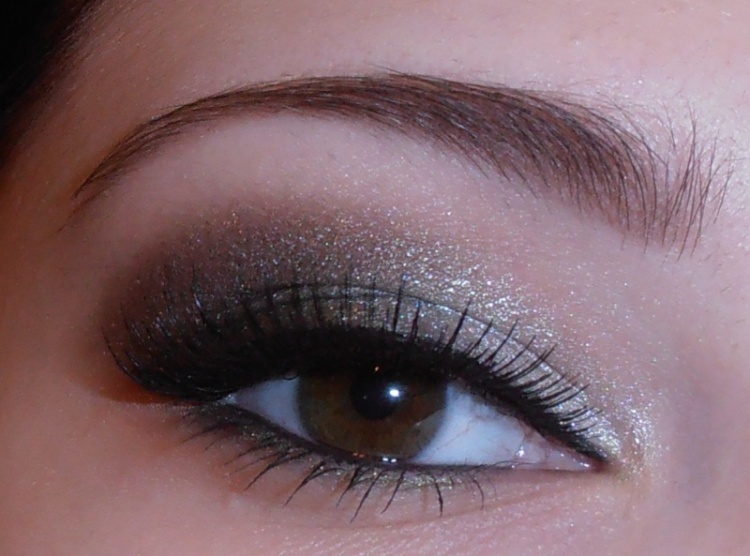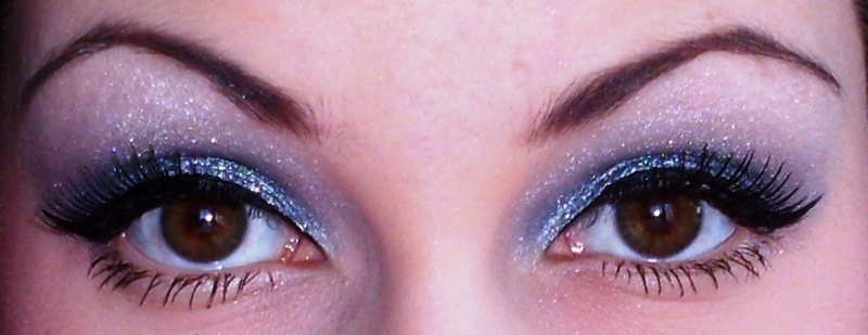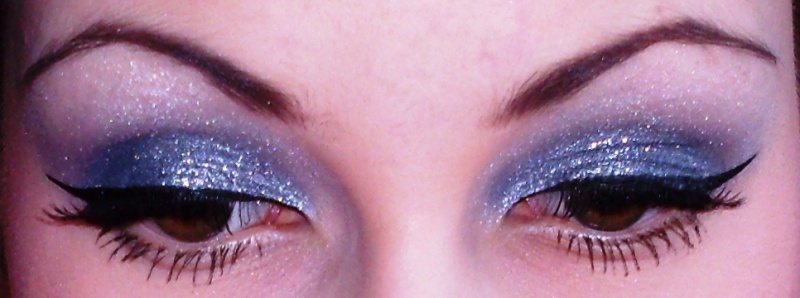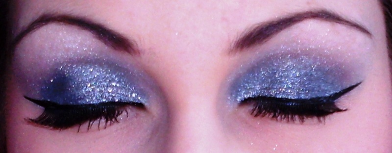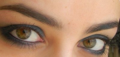 Moje večerní líčení. (Ve skutečnosti je to ličení vyraznější,a jsou to černo-střibrné lesklé stiny a pod obočím jsou bílé).