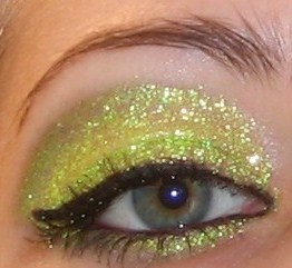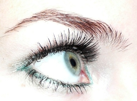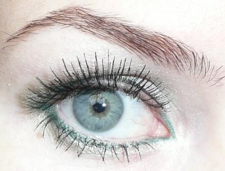 Přihazuju zelenou, nafocení nic moc, neni to vidět na víčku, ale použity stíny z paletky Ruby Rose zelené a zelená tužka na oči Gabriela Salvete.