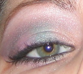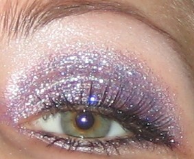 Podklad Artdeco, na vrch NYX pigment Baby Pink a na to glitter Purple