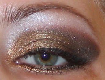 podklad Atrdeco, pigment bronze Artdeco, čierny tieň Sephora a tekutá línka Gosh.