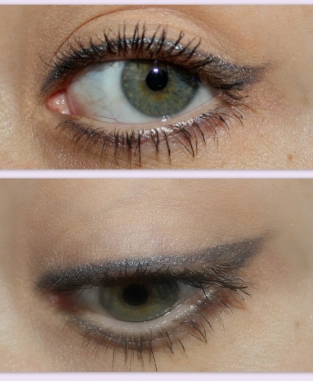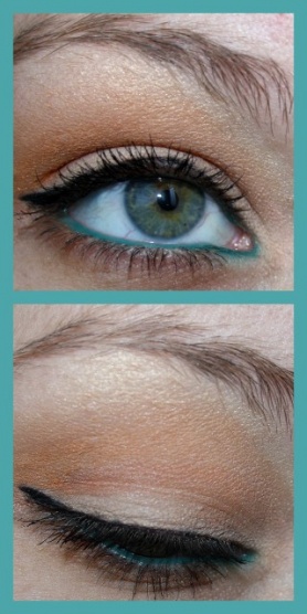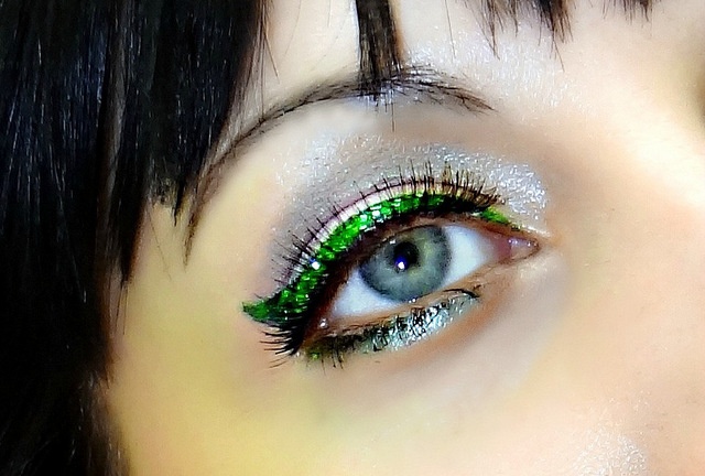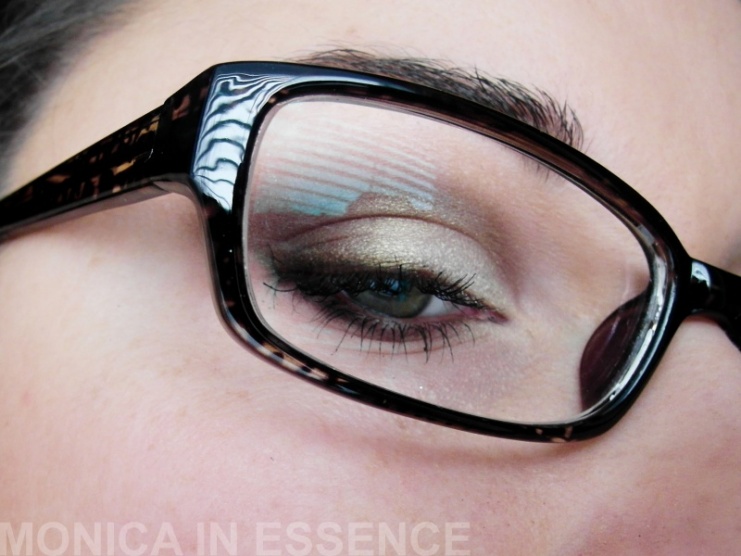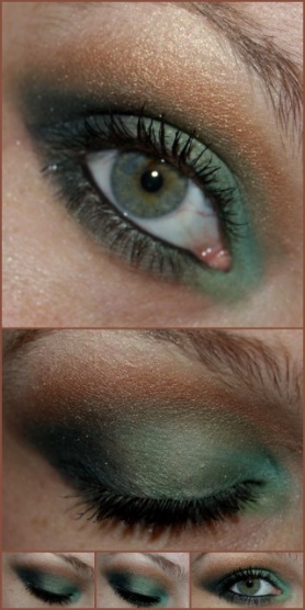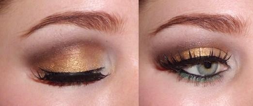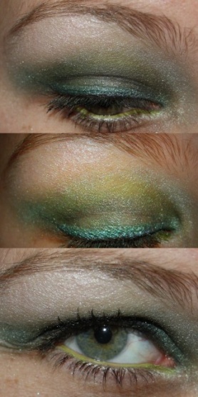 , použité stíny - pigment NYX yellow gold pearl, hnědá a zelená z paletky Manly a podkladová báze Artdeco