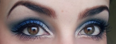 Přidávám modré Douglas stíny v kombinaci s modrým stínem Urban Decay paletka Smoked.