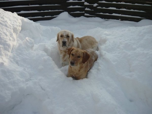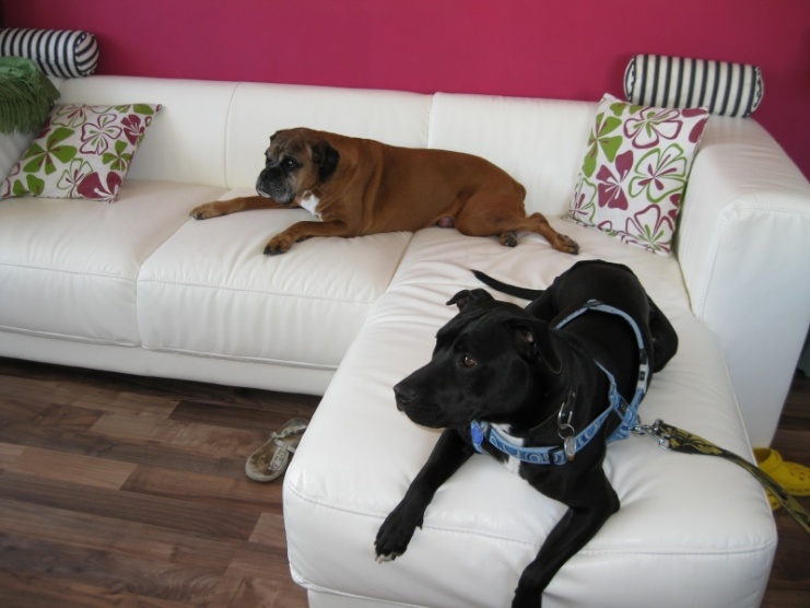 Posílám jednu svojí, boxerku Sáru ,je jí 12, takže taková psí babi. To černá je pitbulterierka Lara, kterou máma s přítelem našli před rokem uvázanou v lese ke stromu. Je to pěkná mrška! Teď k ní pořizují úplně stejného Norise z útulku v Jablonci.