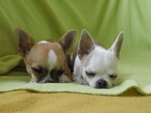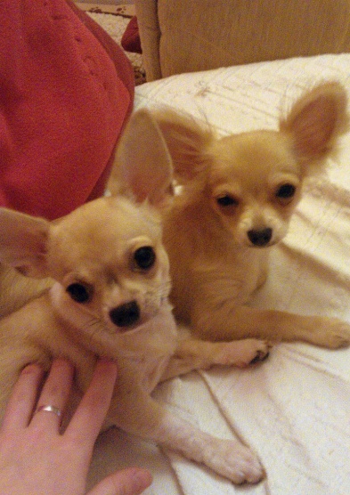Holky mají postavu tak akorát, tedy ta bílá by mohla přibrat, má 1,7kg a ta hnědá má 2kg. Mají 4roky.