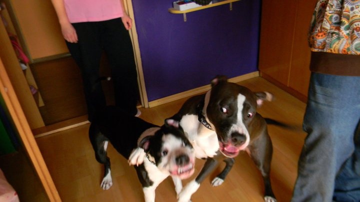 Na první fotce je boxer mých rodičů Denny neboli Nanyn,na druhé fotce můj a přítelův rotvajler Ben neboli Ňunin,dohromady to dáva neskutečnou dvojku