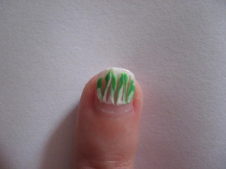 Mám doma úplně obyč laky a ráda experimentuju. Proužky nakřivo, rovně nebo vlnky... Různý barvičky, různě vrstev...