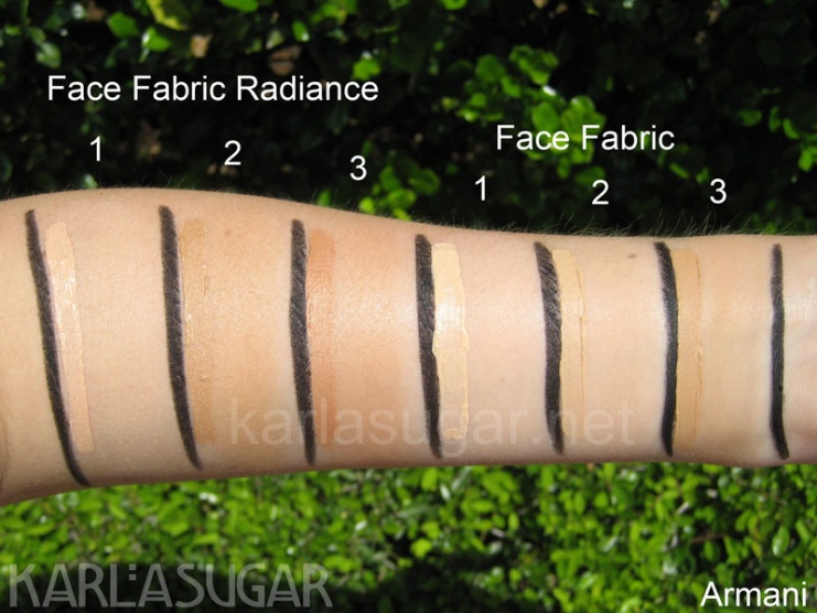 Armani Face Fabric vs. Armani Face Fabric Radiance, zdroj: KarlaSugar