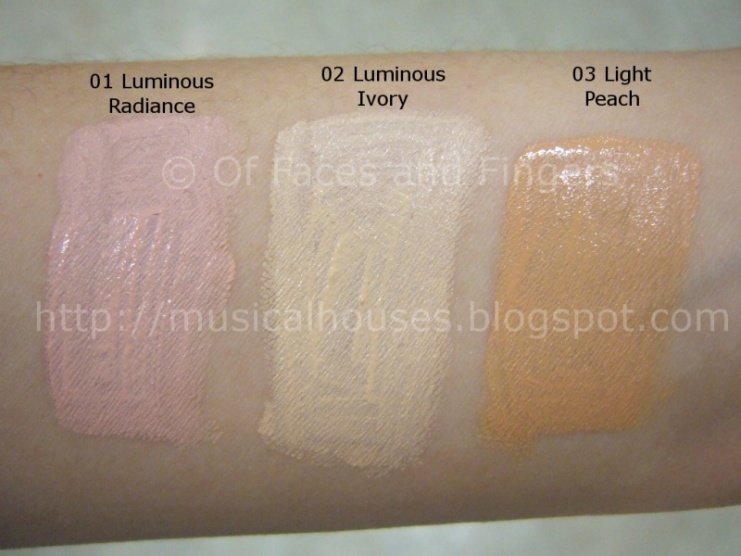 N° 1 Luminous Radiance (the old reliable), N° 1.5 Luminous Silk, N° 2 Luminous Ivory,