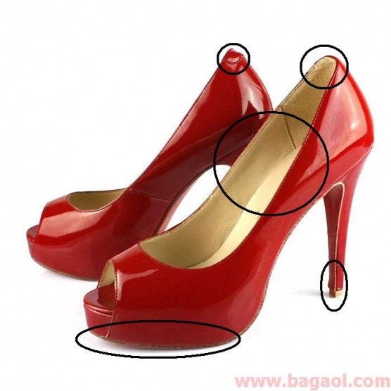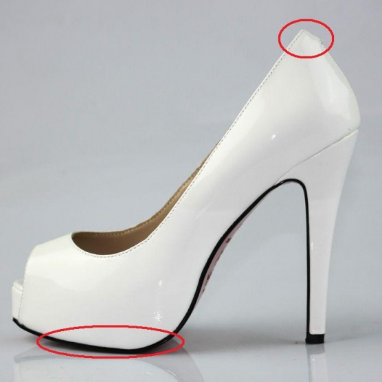 3. Jeden z nejlepších znaků všech nepravých Louboutinek je záševek materiálu na vnější straně nahoře na patě.